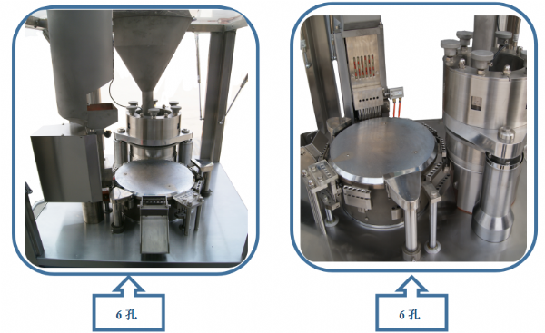 5、配備粉體物料充填機構,使粉體物料經(jīng)過膠囊填充料倉裝置連續(xù)均勻強制下料至膠囊填充區(qū);